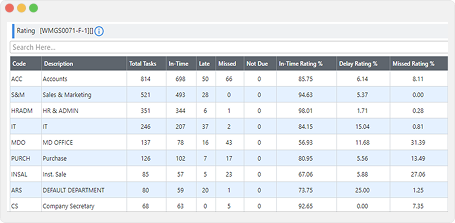 - View efficiency ratings for users, teams, or departments.